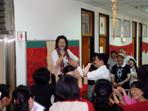 Teacher Chu-hua Huang (黃琡華) hosted the lantern riddle contest. Teachers dressed in red and white led
