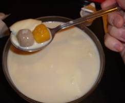 又如有一天,當我費了九牛二虎之力完成一天的工作,想調劑一下,放鬆放鬆時,剛好有朋友邀我去吃點豆花。我請服務生把花生、芋頭、紅豆都放滿整個碗。我們好不容易地把那一大堆佳餚吃完以後,朋友看我的眼神,彷彿能看透我的心思,便說道「再來一碗吧」!