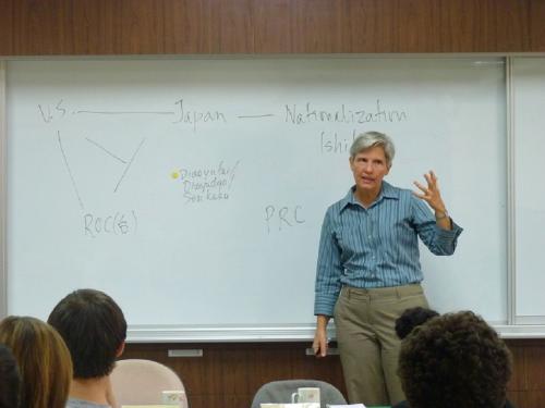 Shelley Rigger首先就她研究的方法論加以說明。她的方法論就是藉著釣魚台的狀況來了解東方國際政治情形。她當天分析的重點是釣魚台,是最近幾年非常有爭議的政治問題。