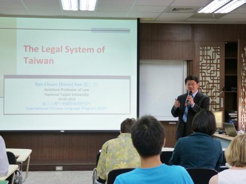 十月二十五日,ICLP的老師與學生很榮幸邀請國立台北大學法律系高仁川教授,就台灣法律為題,給我們帶來一場精彩的演講。高教授為美國加州大學柏克萊分校法學博士畢業,主修憲法、環境法、行政法等法學領域。在演講一小時和採訪半小時的這短短時間之內,高教授積極的對於台灣法律各主要部分作介紹,並表達自己的觀點。