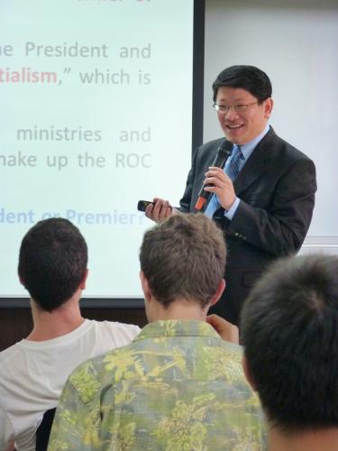 除了說明台灣的法律制度以外,高教授也讓學生看一部關於台灣法律制度的簡介影片。從他的演講中,我們發現台灣現在的法制跟台灣過去的歷史是分不開的。高教授表示,台灣在日據時代,因為日本法制的影響,建立了比較接近德國法的大陸法系現代基本法律體制。,我們聽到這一點就很意外。根據高教授的說明,從一九二十年代,中國大陸開始逐漸建立現代法制。當時,在中國大陸也有一部份採用德國和瑞士的法制來重新建立起自己的法制。一九四九年國民黨以及中華民國將這個法制基礎帶到台灣。因此,到現在,台灣還有很多法律跟隨德國的法律制度。