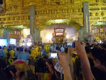 [Click here for video of the Wang Yeh boat procession leaving the temple's front gates moving toward the water where it will be burned.]