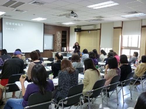 四月三號ICLP舉辦的教師工作坊是由林淑慧老師所負責,講授的話題是[閱讀理解測驗],希望經由這次演講以後,老師們都能夠提高閱讀材料的教法,而讓學生更加進步。林老師分享的時候,講到兩個重點,第一,閱讀理解不同的程度;第二,怎麼測驗學生閱讀理解最好。