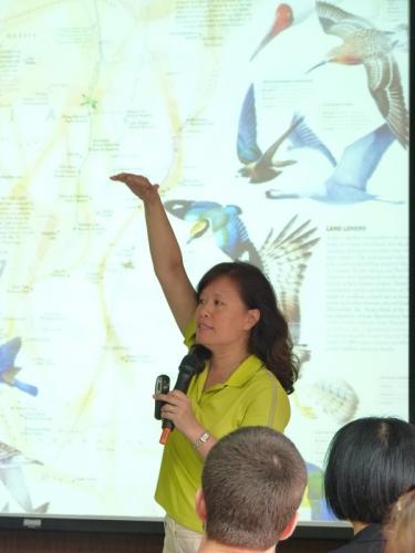 七月四日禮拜四,台大國際長袁孝維教授給我們介紹「台灣的生物多樣性」,並討論台灣鳥類不同的分類。袁教授在台大拿到學士,而在康奈爾大學拿到博士學位。 她特別對台灣本地生物和鳥類有很深的興趣。