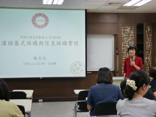 7月31日中午教師工作坊邀請了ICLP所務主任陳立元老師做了一場專題演講,演講主題是「漢語基式結構與信息結構的實踐」。這套漢語基式結構與信息結構的理論是由鄧守信教授所研發建立的,為了對鄧教授表示最為崇高的敬意,陳老師嘗試在鄧教授的理論基礎上,讓老師們能從教材中諸多貌似簡單句的假象當中,辨識出基式結構與信息結構,進而培養出對教材或華人言談語料中的基式結構與信息結構洞察力。
