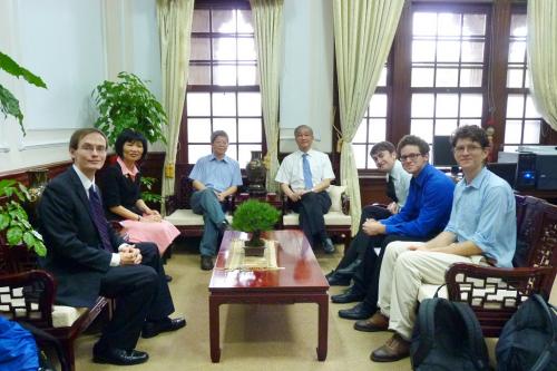四位學生與楊校長的談話大約持續了一個小時,大家談得不亦樂乎,討論所涵蓋的內容也非常廣泛。在這個小時當中,楊校長表示他目前在構思設法改善臺大對外華語教育,給外國學生更多機會到臺灣大學學中文,而且想讓外國學生在臺大的經驗增色。因此他想親自聽聽這四位ICLP學生對這個想法的感想和建議。李啓德詳細地分享了他在臺大申請入學時所遇到的絆腳石。李啓德到ICLP學中文有兩個目標:第一是上ICLP的高級中文課程,同時上一些臺大電腦科學系的課,第二是在暑假把他的心得應用在一個軟體公司,學以致用。不過,因為ICLP學生嚴格地說稱不上是正式的臺大學生,因此他必須先申請到ICLP,被錄取了之後再申請臺大。不待說,這個過程相當漫長。因此,啓德強調,根據他的經驗,若將來臺大與ICLP能將這兩個申請的制度結合起來,肯定將對外國學生有很大的幫助,也可望促成更多外國學生到臺大學中文。楊校長同意啓德的見解,並且表達他想解決這一類問題的誠意。此外,楊校長還補充,他想藉由增加臺大暑期班華語獎學金的途徑,給更多外國學生機會到這邊念中文,促進臺大的華語課程。