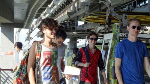九月二十五日週三, 范美媛老師帶了二十幾個學生到貓空去。我們的目的地是一家茶館。學生們先在科技大樓捷運站集合,再坐捷運到台北動物園站 。因為貓空在於山上,所以學生們都從動物園坐纜車上貓空。坐纜車是很棒的機會,因為那天的天氣很不錯,再說纜車上能看到的風景太美麗了,所以我們都拍了幾張照片。
