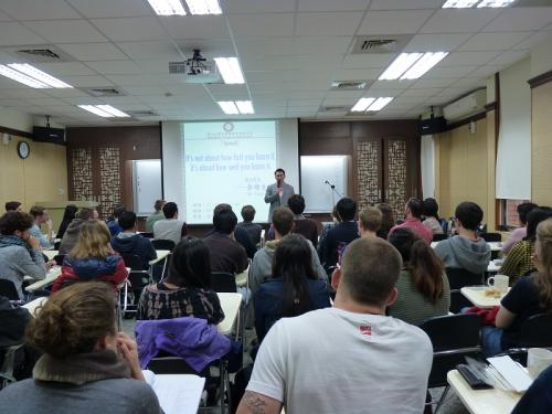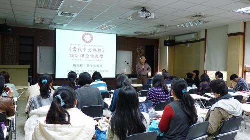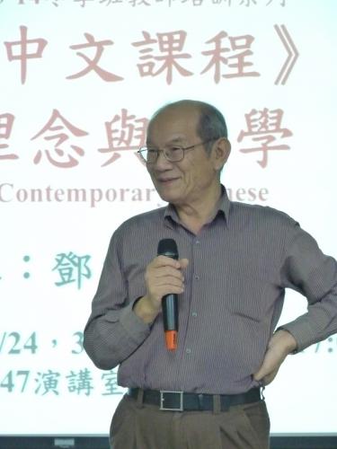 2014/1/6中原大學(臺灣師範大學華研所創所所長)鄧守信教授為本所冬季班教師工作坊系列講座貴賓,主講新教材《當代中文課程》設計理念與教學