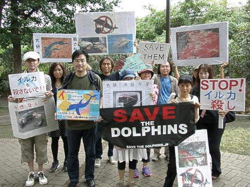 在日本,每年從9月到5月間至少有約20,000隻海豚遭到屠殺,此外,屠殺與捕捉的總數量每年仍持續增加。在這9個月當中,海豚被漁民引誘進入一個海灣,也就是太地町(Taiji)海灣,漁民先將一些海豚出售給世界各地的海洋公園,而且在展開屠殺之前,一些海洋公園的代表已經在海灣旁等待選擇適合合適的海豚。大部分的海豚則被屠殺以及銷售到國內的魚貨市場。窒息或溺水的海豚平均30分鐘後才死亡,甚至於在此家庭成員所留的血液中死亡或被拖入屠宰場,其中還不包括那些由於過度緊張而自殺的海豚。根據保護動物與環境團體的意見,此做法相當殘酷和不人道,因而該團體鼓勵民眾抗議此做法及杯葛抵制日本出售的所有產品。