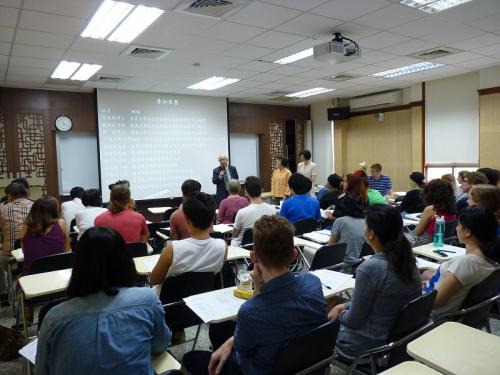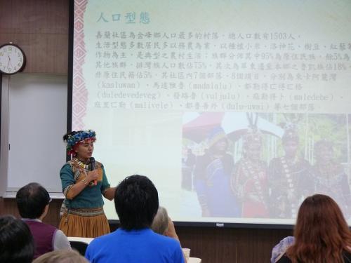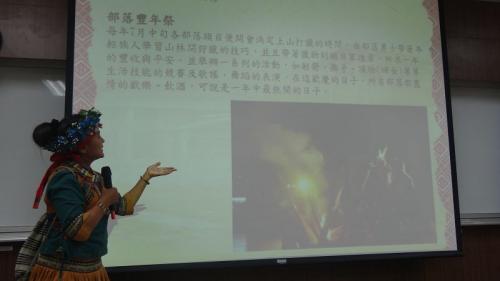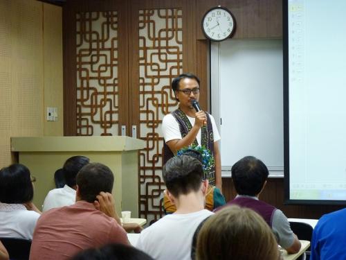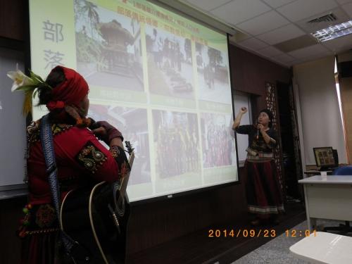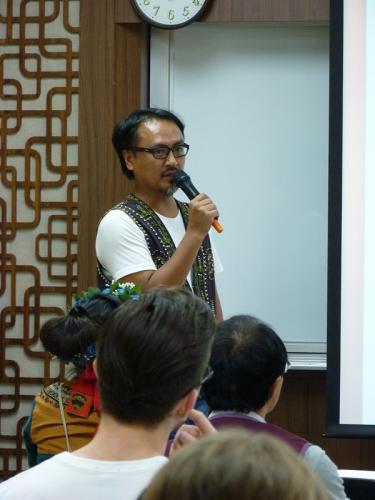 為了讓學生了解這個活動,9月23日我們特地請到了主辦單位來ICLP舉行說明會。當天我們的大家長-文學院語文中心主任徐富昌教授--也到場致辭。來自上述三個社區的青年代表們穿上代表自己族群的美麗傳統服飾,分別向學生簡介自己的社區地理、歷史沿革、發展及文化特色,並合唱兩首原住民歌曲向學生表示歡迎之意。他們的說明與演唱引起學生高度興趣,學生會後也紛紛忍不住要求與代表們合影。