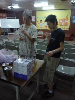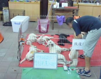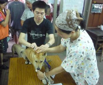 當天天氣炎熱多雲,幾位獸醫及義工一大早就在一座休閒農場集合,舉行流浪貓狗免費結紮活動。我們抵達時,已經有人帶著流浪貓狗在排隊。一整天下來,獸醫替高達八十隻的動物結紮。義工行動極為迅速,連一分鐘也不能浪費似地,安排五張桌子作為手術台,準備幫一隻又一隻的貓狗麻醉開刀。像觀音鄉這種鄉下地方有流浪貓狗不足為奇,但讓我驚訝的是,當地社區竟然有這麼多熱心的義工願意幫忙。