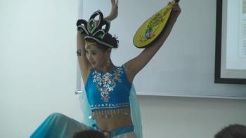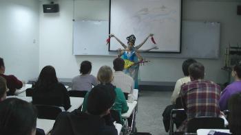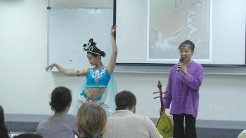It’s a tall order, but the Flying Apsaras Dance Company delivers. With a clear grounding in ballet, the dancer’s legs soar, no doubt inspiring in ICLP students the same breathless feeling first felt by the patrons of Mogao’s caves, who sponsored the artwork to ensure their standing in the community and place in the afterlife. But more important than the dancers’ balance, Ms. Kao, a nurse who turned her attention to her passion for traditional culture and dance once she retired, stressed the breathing process as the mantelpiece of her technique. “It’s the breathing that centers the dancer. From the breathing comes all movement and most importantly the hand movements that signify the messages of the Buddha.”