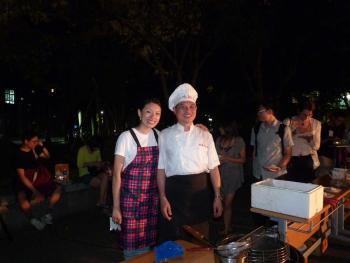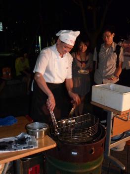 On May 18, 2010 four ICLP students performed their short play, “When Kimchi Meets Stinky Tofu” as part of National Taiwan University’s Arts Festival. The plot comically relates of a young Taiwanese-born man returning to Taipei to find meaning in life after growing up in the United States. The proprietor of Yi Chi Du Xiu (一吃獨秀), one of Taiwan’s most famous stinky tofu shops, served up free stinky tofu with pickled cabbage. ICLP students Fiona Dawn, Wesley Hsu, Orrin Zhang (myself), Jeff Hartsough, and Linda Chu wrote and performed the piece, under the guidance of the Bulletin’s Editior-in-Chief Huei-Feng Phoebe Huang Marzec (黃慧鳳老師) who co-wrote and directed. We were also fortunate enough to have worked and brainstormed with Director Wang Wei (王瑋), who provided suggestions for the play’s storyline. Mr. Li of Yi Chi Du Xiu (一吃獨秀) not only served up his signature green-colored stinky tofu, but also played a role in the play.