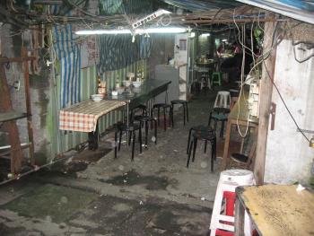 第二家牛肉麵店讓我徹底改變對牛肉麵的看法。這家牛肉麵店名為「小潘牛肉麵」,已經營了三十多年,位於台北北門附近某一條街道幽暗深處。根據「小潘牛肉麵」的老闆娘所說,這條街曾經牛肉麵店林立,現在卻很冷清,牛肉麵店周圍的房子都架起鐵籬笆被封起來了,剩下不過兩三家牛肉麵店仍然照常營業。這條街名為塔城街, 曾經有許多眷村人家住在這兒,但都已經搬遷。「小潘牛肉麵」招牌簡單,就是一片黃底紅字的鐵片釘在一根電線桿上。在這家看起來不起眼的店裡,沒想到,喝了一口牛肉湯頭就值回票價,彷彿有許多星星在我頭上閃耀,讓我對牛肉麵的印象完全改觀。