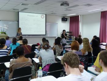 2009-10暑期生經過新生說明會與相關活動的指引後,已經正式上課一週半,也適應了以鍛鍊口說能力為主的課程模式。歷屆暑期生在短短八週密集的訓練後,口說能力令人為之側目,相信今年的學生也不例外。結業口頭成果發表會,將令人拭目以待。