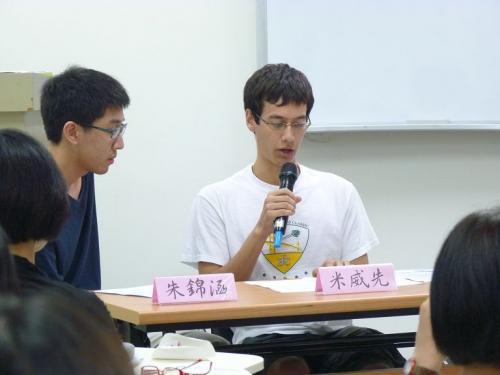 當坐上447演講室發表席完成了發表,獲得了滿堂喝采的當下,你已經為自己的生命歷程立下了嶄新的標竿,同時,也為在場的老師和同學立下了全新的標竿。無論你在發表前或發表的同時,心裡上是何等的掙扎與緊張,但是你畢竟做到了。有了如此深刻的體驗之後,未來以中文在眾人面前發表論文是輕而易舉的了。