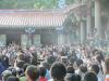 We arrived at the temple thirty minutes early. It was still dark, and there was already a long queue of somehow-energetic people. Inside the temple, there were only two concessions to modernity: the cameras in the hands of the TV crews and the eclectic few hundred lucky enough to attend, and the fans and mist machines which cooled off those who were packed together inside. The steady hum of the machines, and the resemblance of the mist to incense, made them seem particularly appropriate for the ceremony. They were certainly needed, because it was crowded - we'd call it standing room only if there had been any chairs - and the more time passed, the higher and hotter the sun became, as if it were Confucius illuminating, warming, and finally baking us.