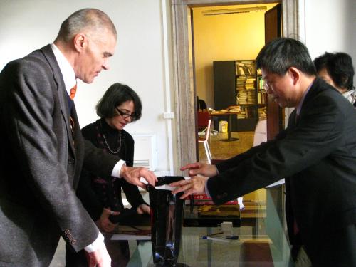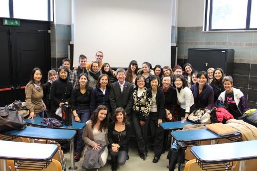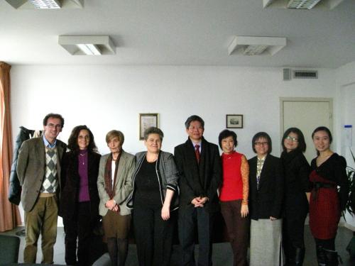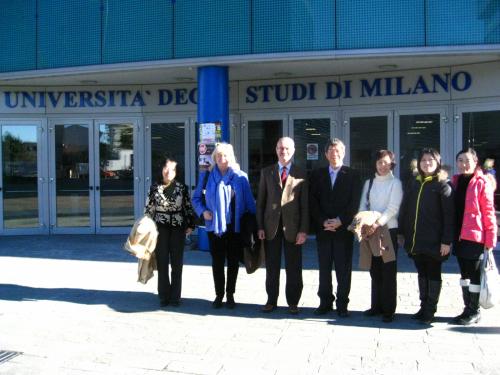 2010年十二月上旬,本所所長梁欣榮教授率領周長楨、范美媛二位老師及陳珮琳、劉憶琪小姐二位行政人員啟程前往歐洲,展開預計為期14天之南歐招生行。此行預定拜訪義大利、希臘兩國六所大學。後雖因希臘全國交通大罷工而被迫取消原定參訪計畫,但本團在義大利順利地拜訪了羅馬第三大學、米蘭大學、威尼斯大學、拿波里東方大學,成果豐碩。這四所大學學漢語的學生共有2800多人。在參訪期間,本團不但與各大學語言學系、東亞研究系所等教授、行政管理階層開會討論交換學生、教師等合作計畫,也在各大學舉行會話華語、文言文教學示範,頗獲當地學生好評。