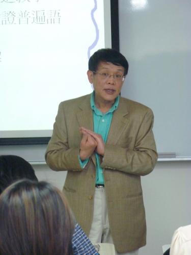 最後的一部分,何教授與老師們一起熱烈地討論了現代臺灣白話的演變,尤其是英文對華語的影響很明顯,譬如説老師們常常聼到人說「O不OK?」「under不understand?」這樣的混雜語。這讓我聯想到文光烈同學上個學期的期末表演,可見語言學家也覺得這樣的現象很有意思。同樣地,何教授建議留學生要多交本地朋友,可是萬一學生聼到當地朋友說:「我懂你的意思,你懂我的意思,你何必繼續花錢上課呢?」那樣的挑戰,應該處之泰然,記住之所以要繼續念書,是因爲正式場所的語言標準要比朋友聊天的嚴格得多。
