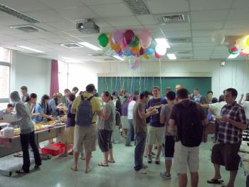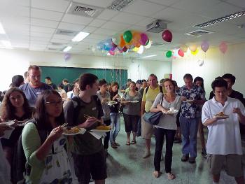 ICLP director Dr. Leung officially welcomed students, inviting them to work hard but also to enjoy their time in Taiwan. Fan laoshi and Xu Zhen-feng laoshi led a rendition of the birthday song in Chinese for students and teachers who were born in October. Finally, ICLP student Jasmine Ting hosted an interactive Q&A session to test students’ knowledge of the origins and traditions of with Mid-Autumn Festival. Those who answered questions correctly received a pocket-sized Chinese dictionary to help them in their studies. In addition to these prizes, students left the party with full bellies, new friends, and cultural knowledge.