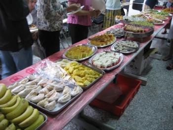 Tables arranged in the main lecture hall were covered in neat rows of delicious Taiwanese snacks generously provided by ICLP. For some foreign students, it was an opportunity to sample certain items from the buffet for the first time. Over shrimp dumplings (蝦餃), pot stickers (鍋貼), guava juice, and fresh fruit, students mingled and laughed with their new classmates. The food nourished the hungry students, while the conversation satisfied each person’s curiosity for what brought everyone here together.