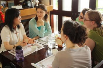 [June 27] A busload of eager ICLP students rose bright and early for a busy day of exploring treasures old and new: a morning tour of the Lin Yutang House and an afternoon at the National Palace Museum.