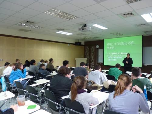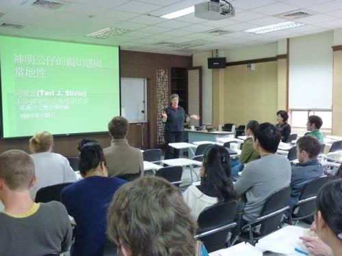 二月廿四日中午司黛蕊博士(Dr. Teri J. Silvio)到ICLP來給學生們介紹她很有趣的研究。司博士跟ICLP也有密切的關係──她以前也喝過ICLP的墨水。她是人類學家,研究主要集中在東亞上。當她開始念研究所時,同時也開始學習中文,學了兩年的中文就來到ICLP繼續磨礪她語言的能力,學了一年就回美國,最後也決定再來在臺灣做研究,她最近十年在中央研究院(Academia Sinica)工作。司博士表示,對她來說,中文不只是做研究的一個工具,她對中文本身也感興趣,除了現代漢語之外,也讀過文言文,此外,她還會講基礎的台語。她的經驗與專業對我們學中文的學生真的有感召力,但她自己也承認中文比較難學。我問她有沒有一段時期想放棄中文,她開玩笑地回答她高中時代也學了西班牙文,曾經想把她的研究焦點換成墨西哥,想去那兒做研究。但最後因為認為自己的研究太有趣了,而沒有放棄。